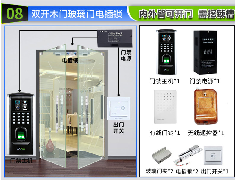 【內外皆可開】單開有框玻璃門是需要挖槽 安裝電插鎖的。
