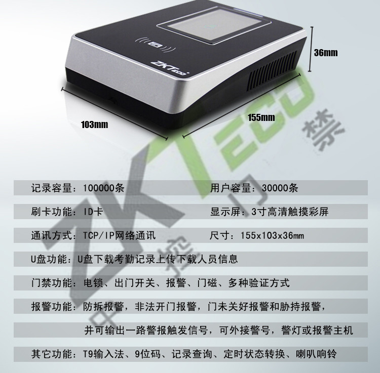 門禁功能:電鎖、出門開(kāi)關(guān)、報(bào)警、門磁、多種驗(yàn)證方式