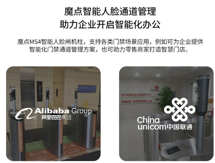 魔點MS4智能人臉閘機柱,支持各類門禁場景應(yīng)用,例如可為企業(yè)提供智能化門禁通道管理方案,也可助力零售商家打造智慧門店。