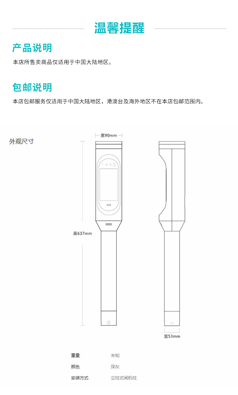 釘釘魔點MS4智能人臉閘機柱 人行通道閘立柱